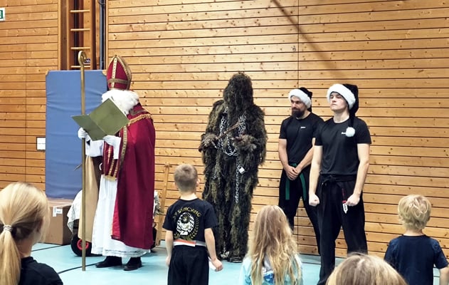 Beim Jahresabschlusstraining war unsere Halle mit genau 78 Teilnehmern, unserem 6-köpfigem Trainerteam und vielen Zuschauern voll ausgelastet. Beim Besuch vom Nikolaus und seinem Krampus bekam jedes Mitglied eine Lions-Mütze überreicht. Bevor jedoch das Jahr ausklang wurde noch einmal ordentlich geschwitzt.