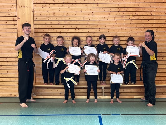 Am 12. OKtober fanden die Gürtelprüfungen der Minis und Kidsgruppen statt. 16 mal wurde der erste Pandagrad (bis 5 Jahre) bestanden und bei den Kids 16 mal der weiß-gelb-weiße Gurt und zwei mal der gelb-weiß-gelbe Gurt.
