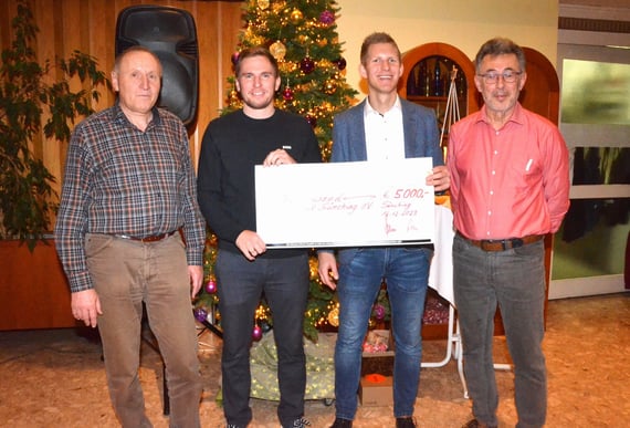 Anläßlich der Weihnachtsfeier 2023 des SV Sünching e.V konnte 1. Vorstand Helmut Jende und Kassier Fanz Gstettner vom Sportförderverein Sünching einen Spendenscheck in Höhe von 5000 €uro an die beiden Vorstände vom SV Martin Bronold und Benjamin Ostermeier übergeben. Der Förderverein unterstützt damit den SV bei seiner vielfältigen Abteilungsarbeit insbesondere im Jugendbereich.