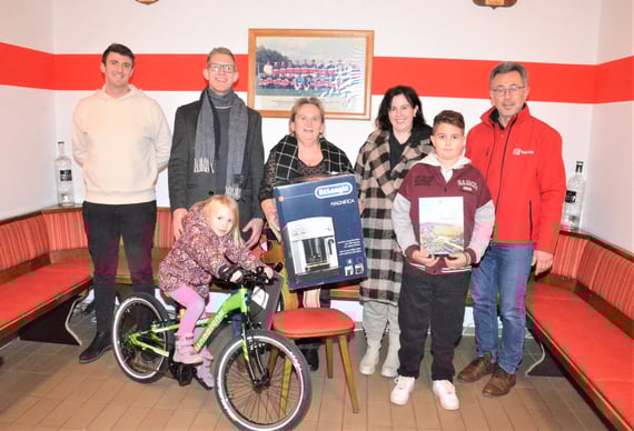 Der Sportförderverein Sünching e.V konnte nach den Feiertagen den glücklichen Gewinnern der 2. Weihnachtstombola die Hauptgewinne überreichen. Vorstand Stefan Parzefall zeigte sich hochzufrieden mit über 4000 verkauften Losen. Die Tombola scheint ein fester Bestandteil der Sünchinger zum Jahresende zu werden. Das zeigten auch über 180 Besucher der im Livestream übertragenen Ziehung der Preisträger. Er bedankte sich bei allen Losverkäufern sowie den vielen Sponsoren die zu diesem Spitzenergebnis beigetragen haben. Den Hauptgewinn, einen Kaffeevollautomaten im Wert von über 600,00 € konnte er an Mariele Wagenthaler aus Sünching übergeben. Den Wellnessgutschein vom Bayerwaldhof in Bad Kötzting in Höhe von 350,00 € gewann die Familie Bründl aus Hadersbach. Mit einem strahlenden Gesicht konnte Lina Ostermeier aus Rain das Jugendfahrrad, (gesponsert von Bikezeit Neutraubling) im Wert von 350,00 € in Empfang nehmen. Weitere 140 schöne Sachpreise konnten bei der Gewinnausgabe im Sportheim Sünching an die Gewinner übergeben werden.